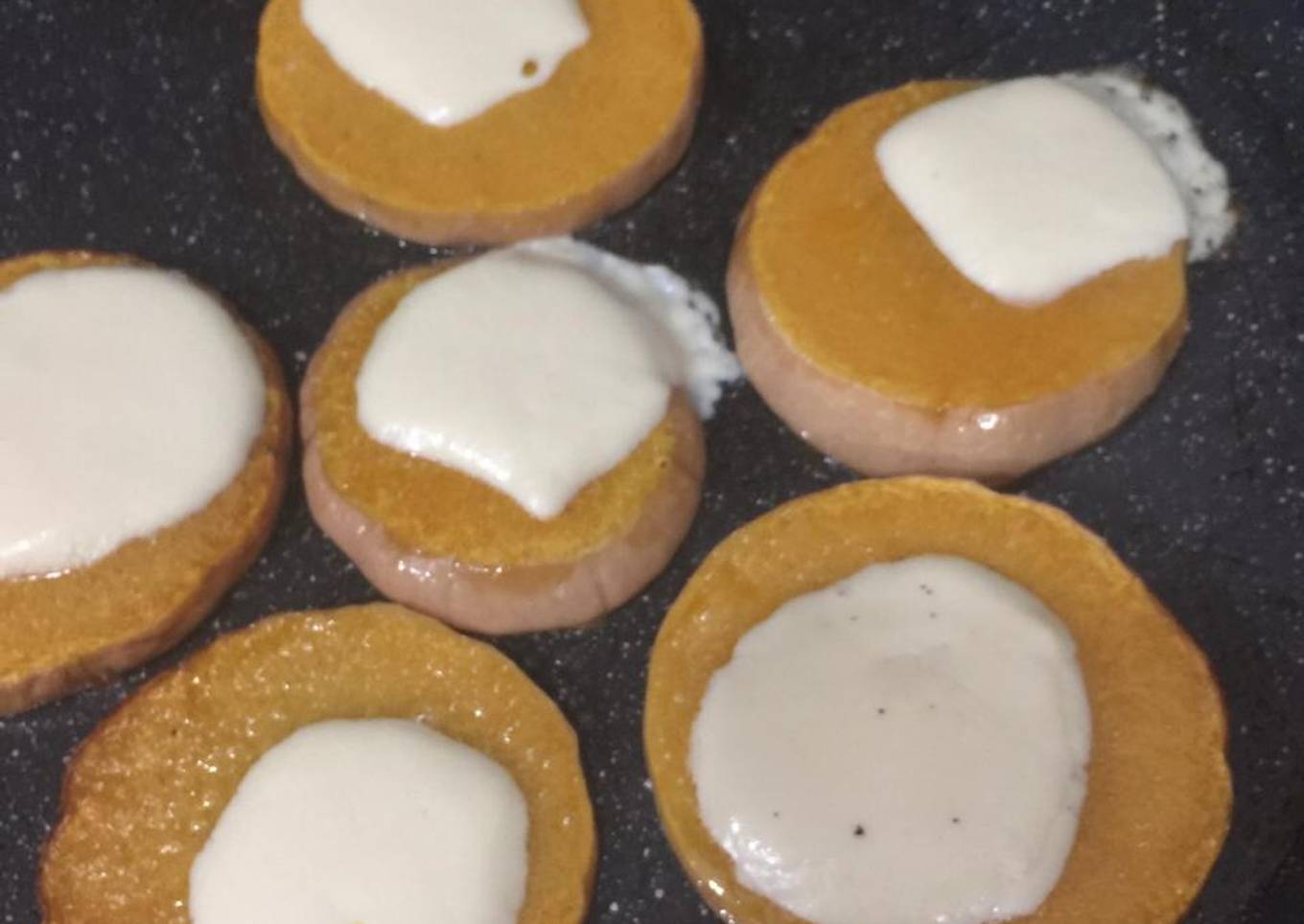 - Poner una lonja no tan delgadas de queso cremoso sobre cada rodaja.